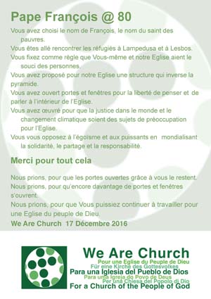 We Are Church, 17 diciembre 2016